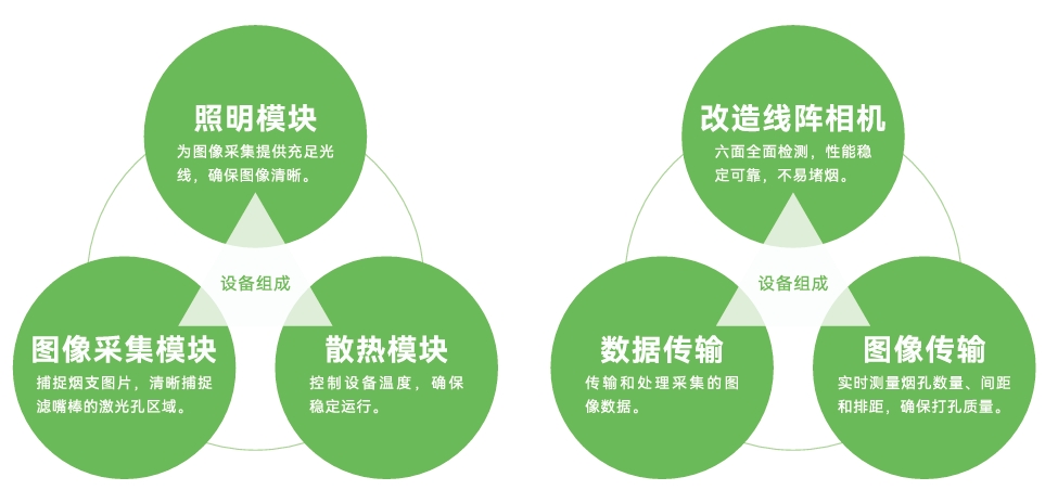 在線測量煙(yān)孔數(shù)量、間(jiān)距和(hé)排距等指标,确保煙(yān)支激光(guāng)打孔質量合格